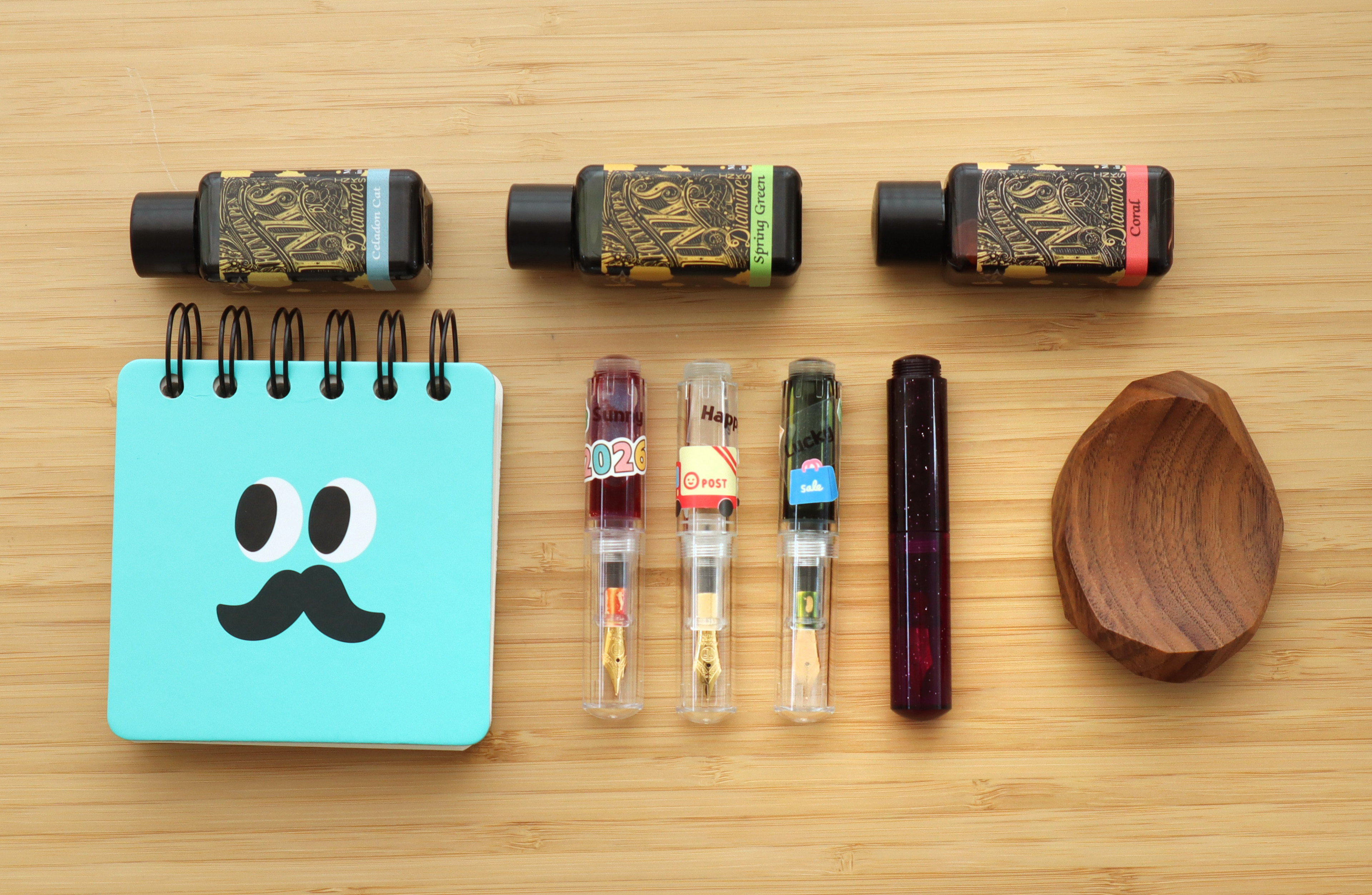 데몬 모델을 3자루 구매하다 보니 각 만년필이 이름을 부여해 줬습니다. 세일하는 물건을 득템하면 돈을 번 거니까 '럭키', 택배가 오면 즐거우니까 '해피', 2026년엔 새로운 태양이 뜰 것이기에 '써니', 이렇게 이름을 지어봤습니다... 만..