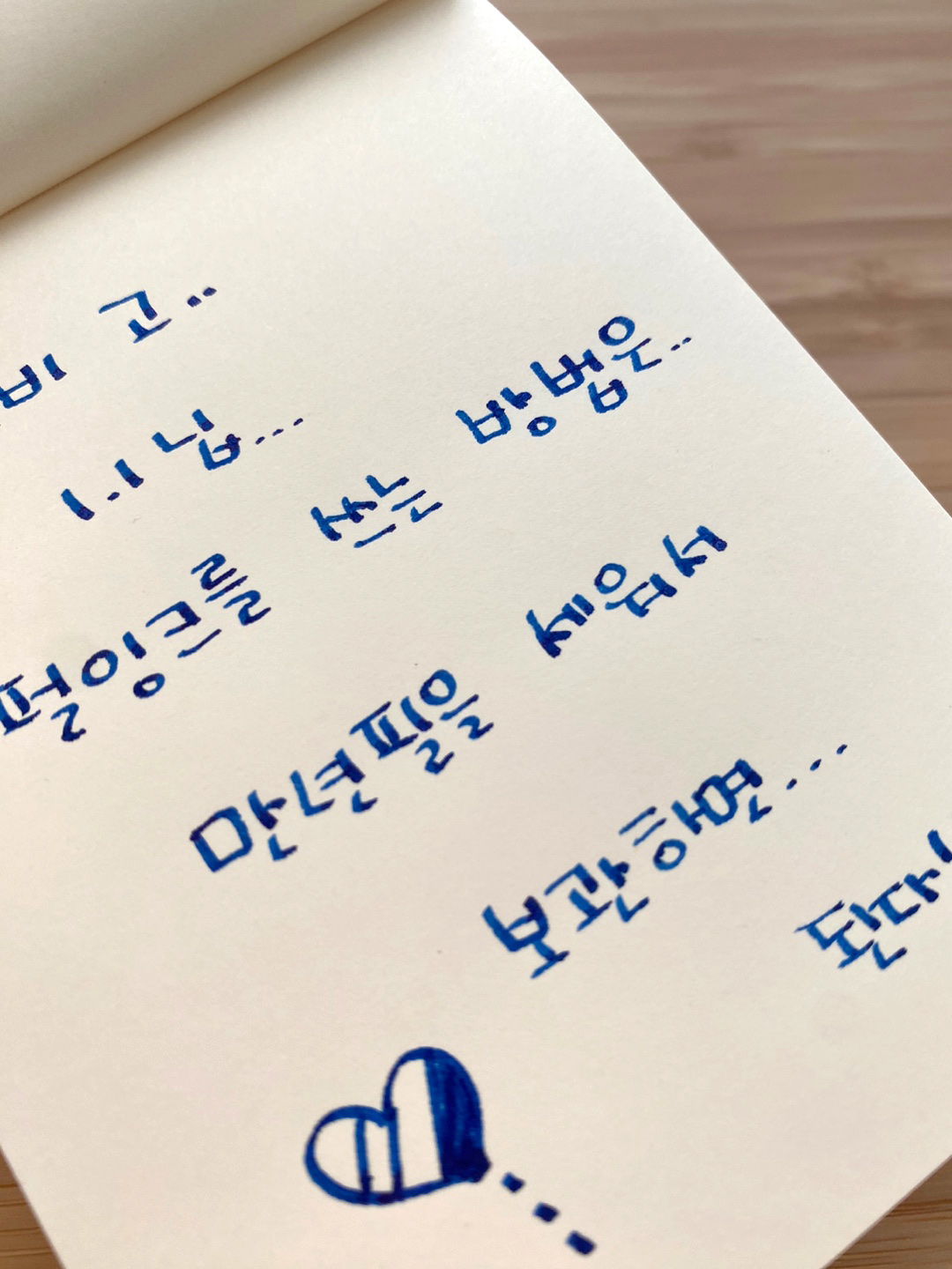 시연을 위해 로디아(Rhodia) 종이를 사용했는데, 실제 눈으로 볼 때는 은은한 펄감이 느껴졌으나 사진으로는 그 영롱함이 다 담기지 않아 아쉬움이 컸습니다. 특히 기대했던 '적테'의 경우, 만년필 닙으로는 그 존재감이 뚜렷하지 않았습니다. 커뮤니티 고수들의 조언에 따르면, 은하수 파랑의 적테를 제대로 보려면 토모에리버처럼 잉크를 천천히 흡수하는 전용지가 필수라고 합니다. 또한, 사용 중에는 펄이 피드 쪽으로 쏠려 막히지 않도록 펜을 세워서 보관하거나 수시로 흔들어주는 세심한 관리가 필요했습니다.