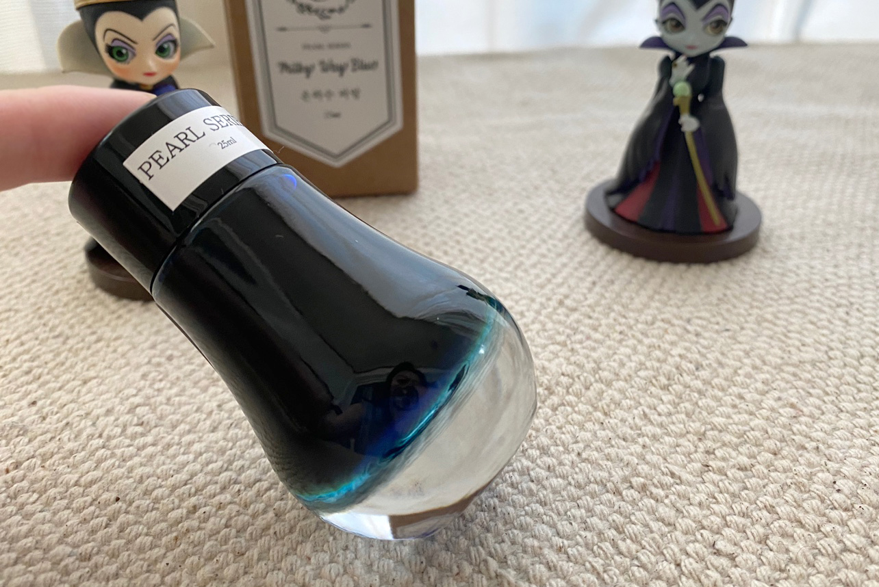 도미넌트 인더스트리 '은하수 파랑'은 색상 자체만 놓고 본다면 단연 독보적인 아름다움을 자랑합니다. 하지만 만년필 관리에 익숙하지 않은 초보자분들이라면 펄 잉크를 만년필에 넣는 시도는 조금 더 신중하게 고민해 보시길 권합니다. 그럼에도 불구하고 이 고생을 감수할 만큼 예쁜 것은 사실이라, 저는 당분간 이 화려한 지옥(?)에서 은하수를 감상하며 즐거운 사투를 이어갈 것 같습니다.